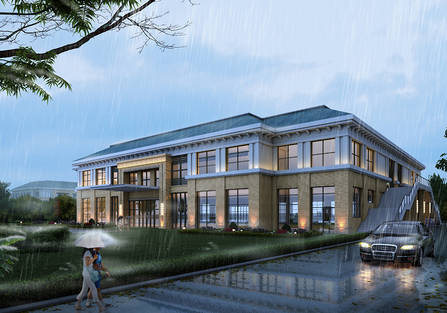 建筑色彩以淺黃色系列為主,風(fēng)格為“現(xiàn)代中式”建筑風(fēng)格。