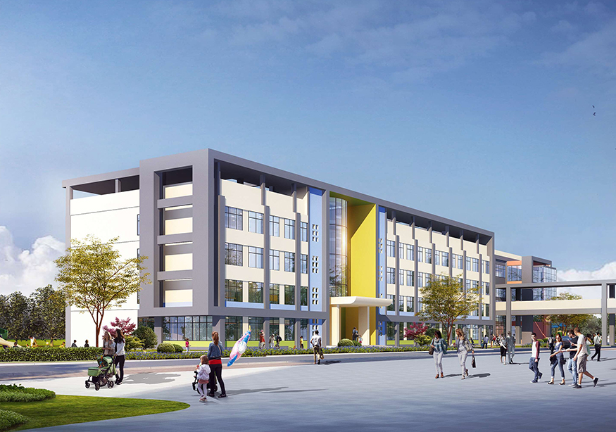 學校高起點規劃、高標準設計、高質量建設,功能實施齊全,規劃建設實驗樓、教學樓、辦公樓、足球場、籃球場等;